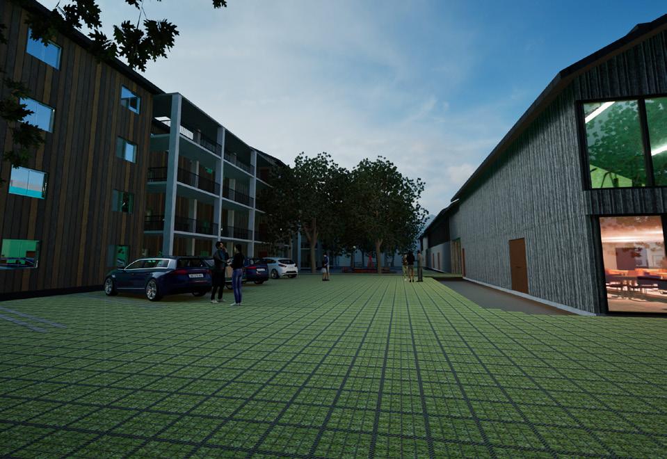 With the site previously being 95% impervious, permable parking has reduced this to 45%