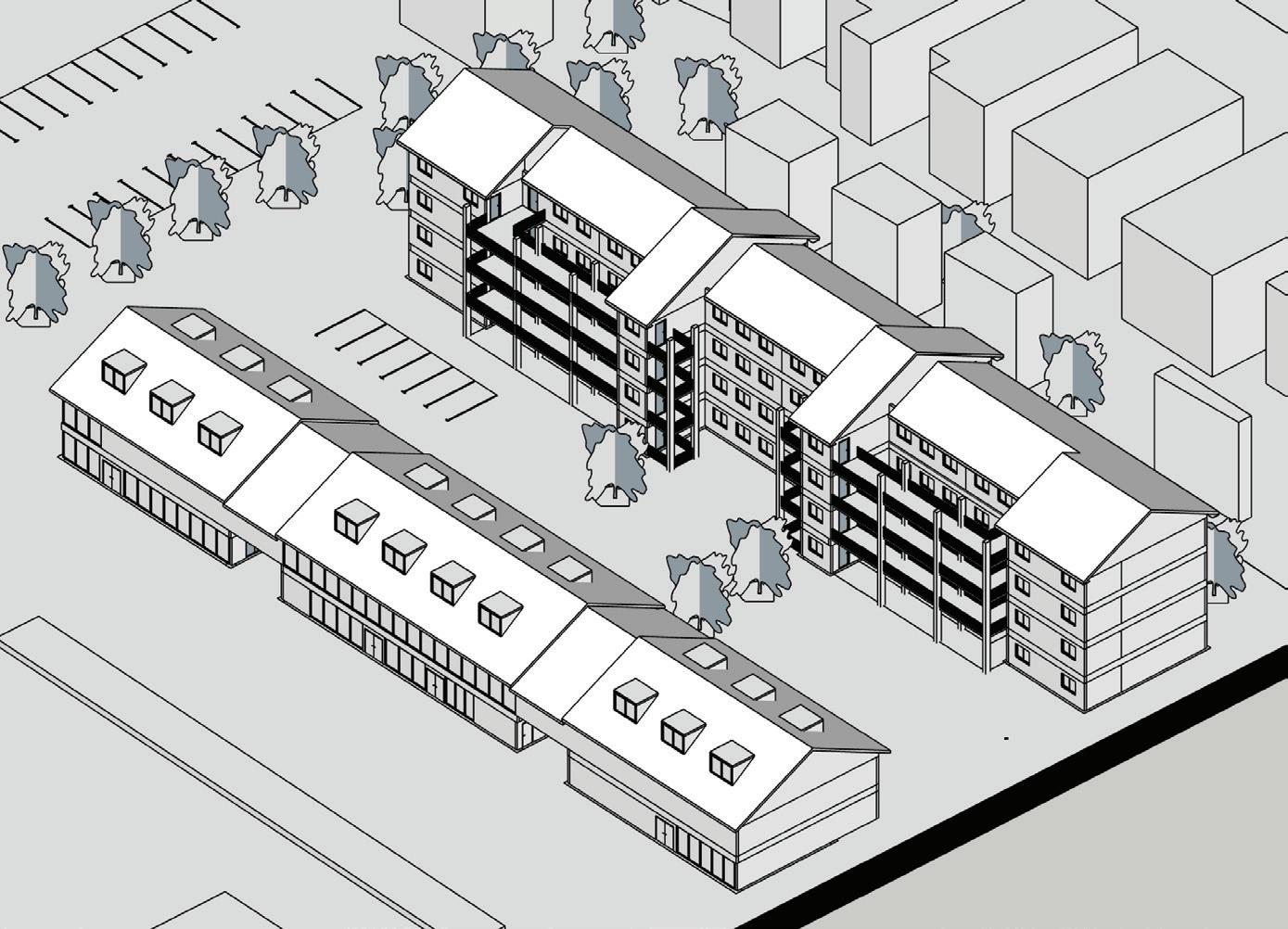 The goal of this project was to promote saftey, socialization, and comfort to single parents. In living here they can easily find work, find child care, and find other single parents to converse with to help against depression and loneliness. With this construction being on main street it also gives parents access to other work environments as well as schools K-12 to help get their children education.