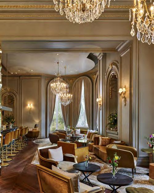 Los espacios comunes —el lobby con su cúpula floral y La Cour Jardin— poseen una grandilocuencia inesperada. El detalle es siempre protagonista: la sutileza de una moldura, el trabajo de una tela, la disposición exacta de la luz. Cada objeto parece guardar memoria propia, un susurro de historia encapsulado en terciopelo.
