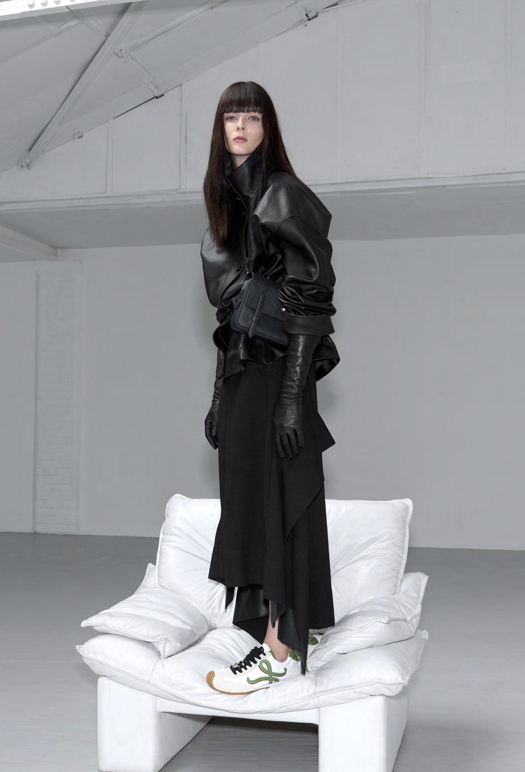 se contrae como una presencia viva. El cuero traza líneas precisas. Aquí, el poder es una composición: el diálogo entre materia y vacío, entre el gesto y lo que queda después.