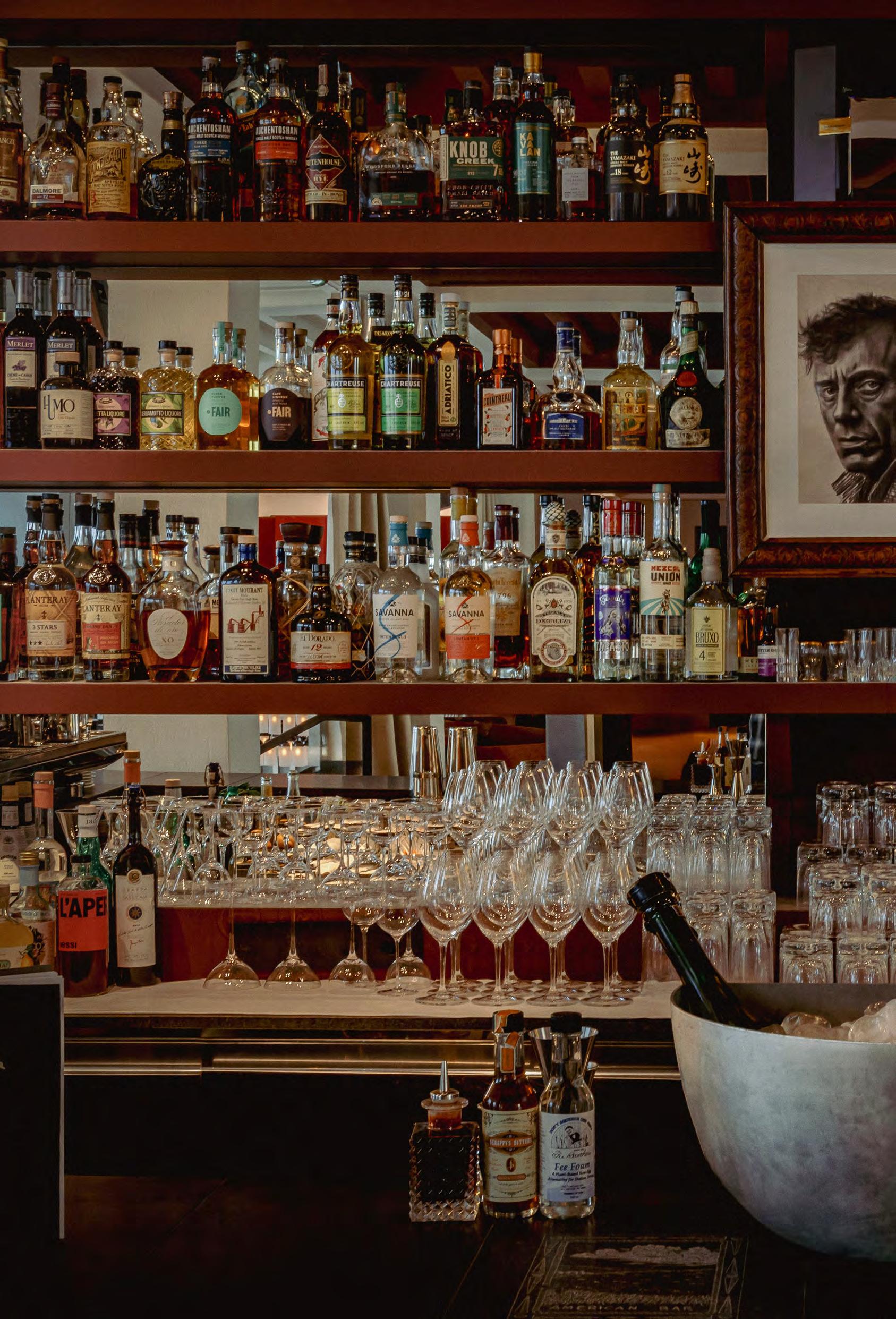 Más allá del comedor, el American Bar revive la edad dorada de los cocteles. Un paso por la gran escalera y el ritmo cambia: jazz, luz ámbar, bourbon de Kentucky y vinos que susurran tierras lejanas.
