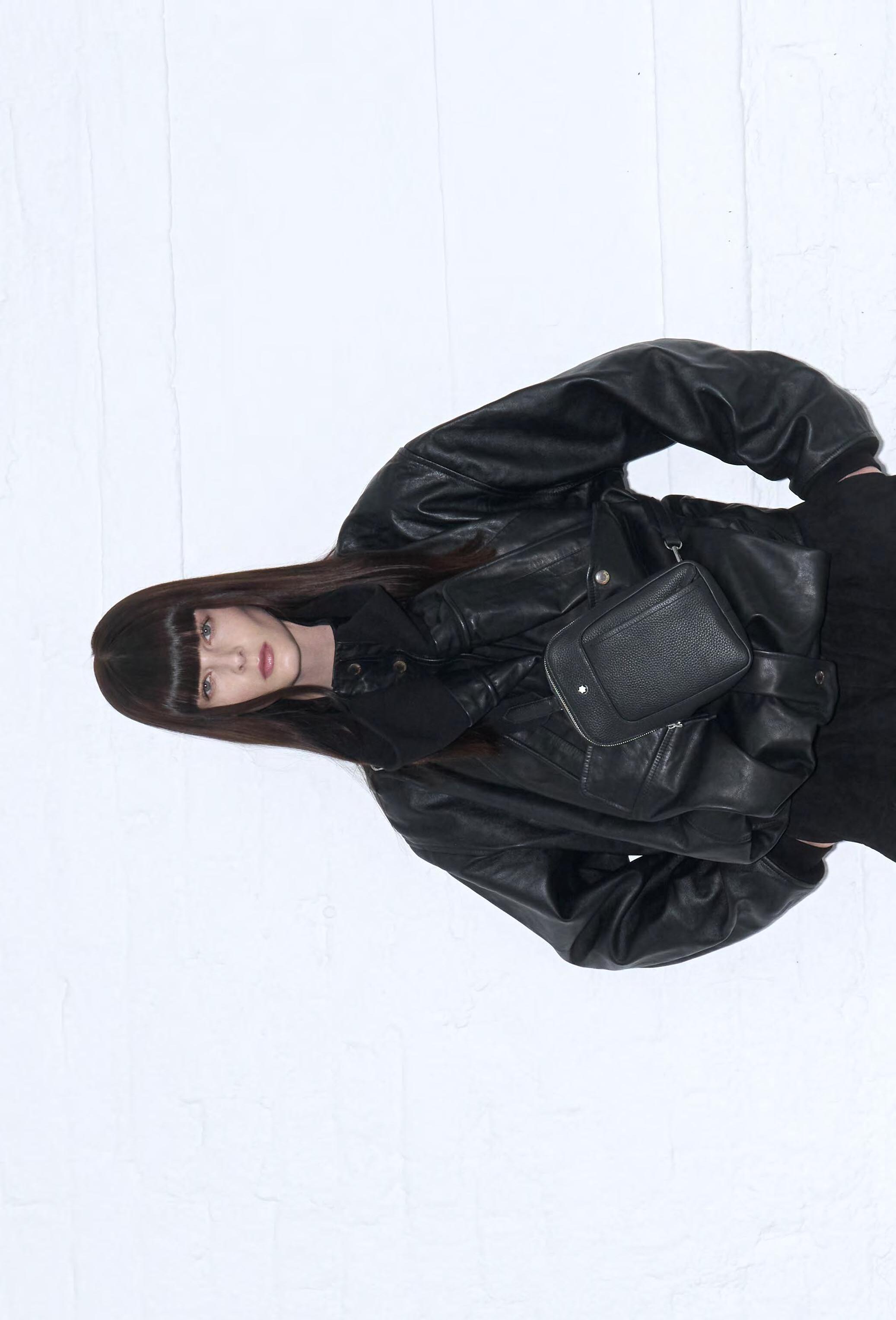 Prada trabaja con dos calidades esenciales: la más suave, en Soft Grain leather o en opciones creativas como gamuza o piel estampada; y la más estructurada, en piel Saffiano, reconocible por su característico grabado cruzado y su resistencia. Este material se obtiene mediante un proceso de prensado térmico del recubrimiento cruzado, seguido de un encerado