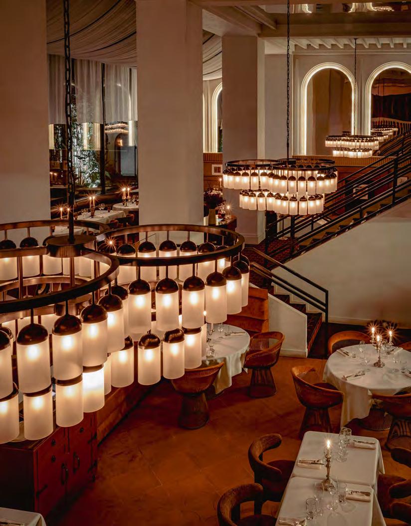 En el corazón de este relato está Temple & Chapon, el restaurante de la chef Mélanie Serre, donde los chophouses neoyorquinos de los cincuenta se encuentran con la precisión francesa. Bajo las altas bóvedas, la escena se siente como una fantasía americana reinterpretada a través del prisma de la elegancia parisina.