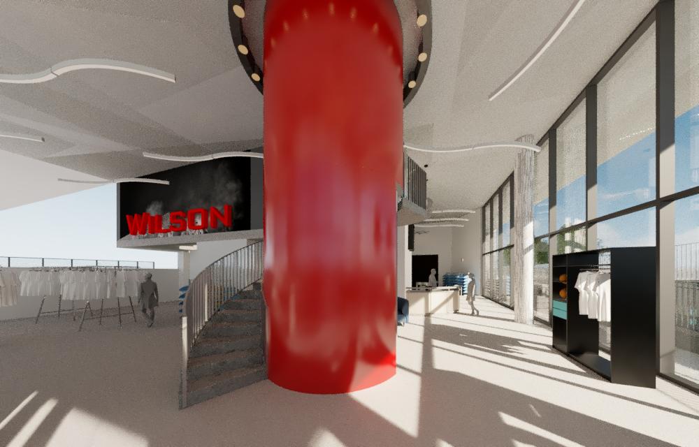 Wilson is a retail store that focuses on athletic clothing and equipment and is looking to open brick-and-mortar stores in the US. The design concept being presented is derived from their mission statement: ignite your potential.