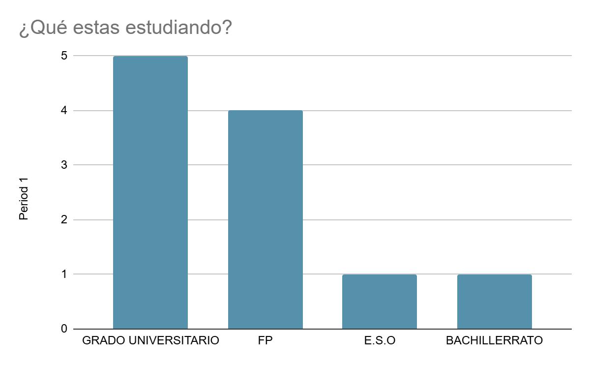 A partir de esta gráfica, se puede apreciar que la mayoría de los entrevistadossiguen formándose académicamente. La mayor parte de ellos está cursando un grado universitario o Formación Profesional (FP). Además, se observa que hay un número significativodeparticipantesqueestánestudiandoenbachilleratoytambiénenFP.