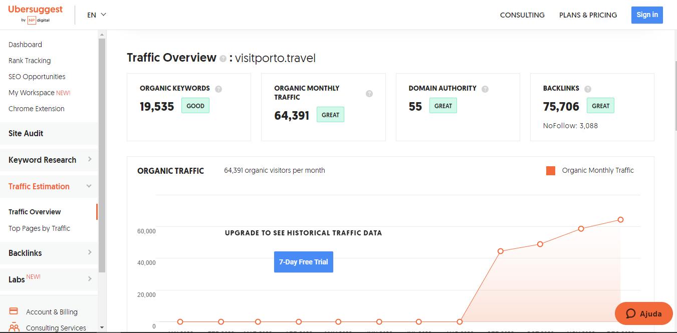 Será utilizado o Google Analytics para pesquisar as KPI’s: