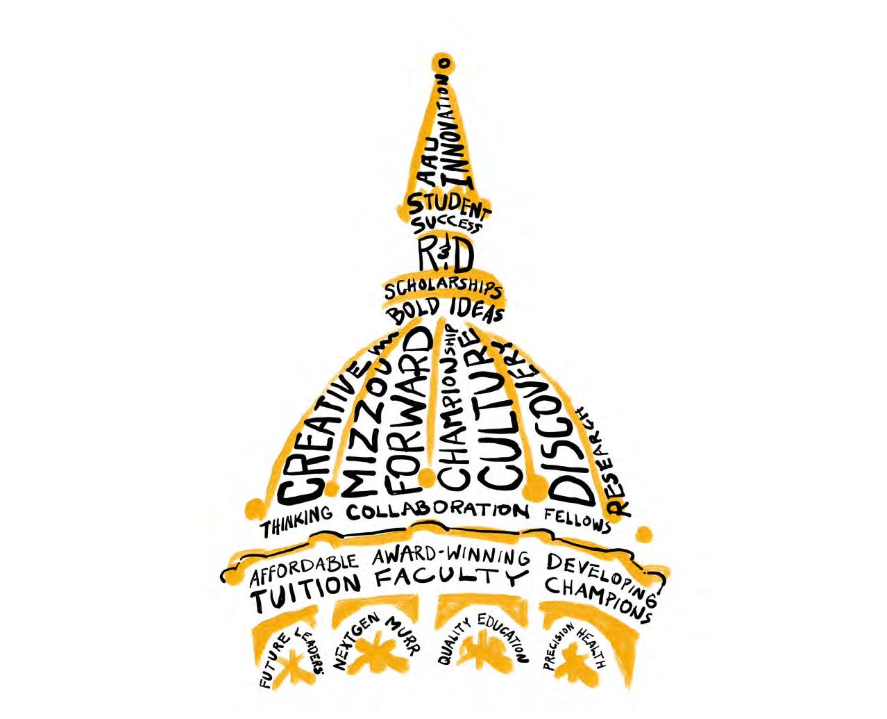 As you’ll note on page 28, Mizzou’s recent successes include its highest-ever volume of applicants (for Fall ’24), an increase in retention and graduation rates, a record $462 million for research expenditures in fiscal year 2023 and a continued ascent in performance rankings among the research-focused Association of American Universities.