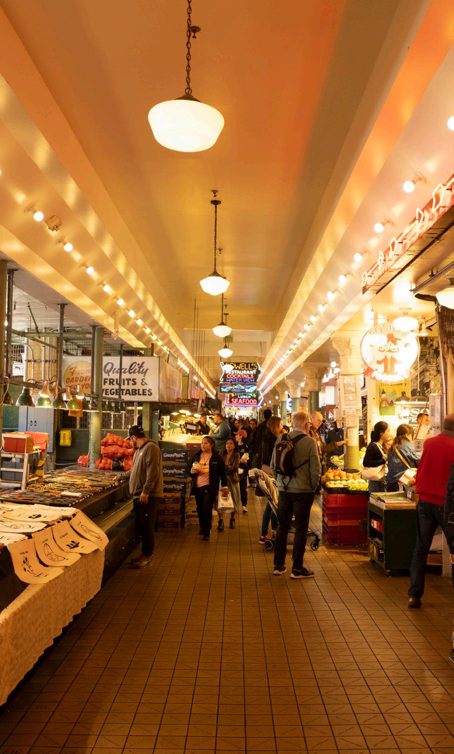 Inaugurado en 1907, el Mercado de Pike Place es un símbolo histórico de Seattle. Creado para conectar directamente a agricultores con consumidores, hoy es famoso por sus productos frescos y su vibrante ambiente. Este mercado sigue siendo un punto central de la vida local y un reflejo del espíritu de la ciudad