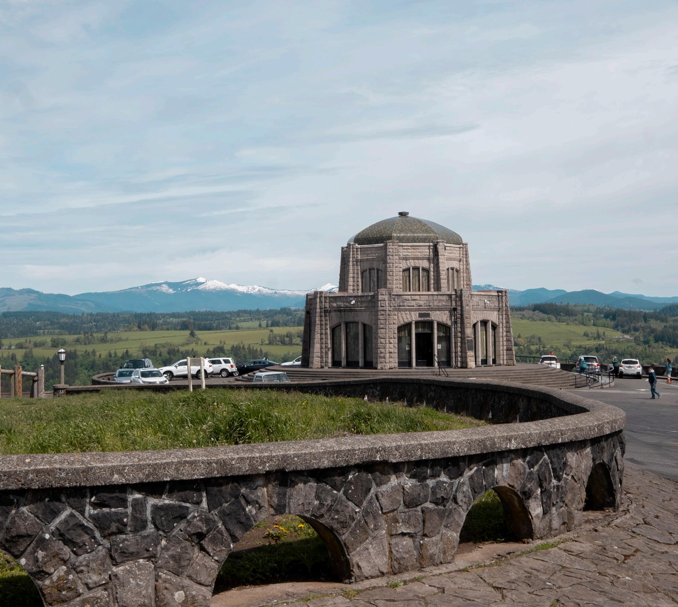 Inaugurada en 1918, la Vista House se alza majestuosamente en lo alto de Crown Point, ofreciendo una vista panorámica del río Columbia y sus alrededores. Construida de piedra y con una estructura circular, fue concebida como un lugar de descanso para los