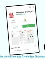 printen. U kunt de Afvalwijzer ook op uw mobiel of tablet raadplegen, via de app. Met deze (gratis) app krijgt u alle informatie, precies op maat voor uw adres. Ook kunt u de app zo instellen, dat u een signaal krijgt op de dagen dat de verschillende afvalsoorten worden ingezameld. Ga naar Google Play of Appstore om de app ‘Afvalwijzer Groningen’ te installeren.