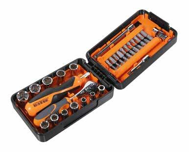 25 bits,1 verbindingsstuk en 1 omschakelbare ratel in kunststof koffer