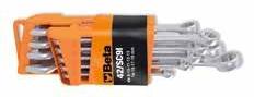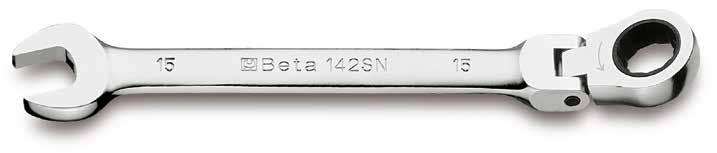 Kop 15° gebogen, waardoor moeilijk bereikbare plaatsen kunnen worden bereikt, zoals het geval is bij onze iconische ringsteeksleutels, “42”