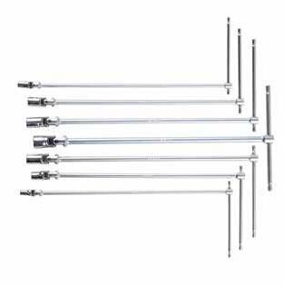 7-delig set T-sleutel met cardangewricht en zeskant dopsleutel