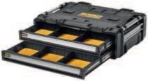 TOUGHSYSTEM, AANGEPAST AAN DE RUWSTE OMSTANDIGHEDEN Stel je ideale set samen naar jouw behoefte: ko ers, transportbasis, organizers en gereedschapstassen voor vervoer en opbergen van klein en groot materiaal.