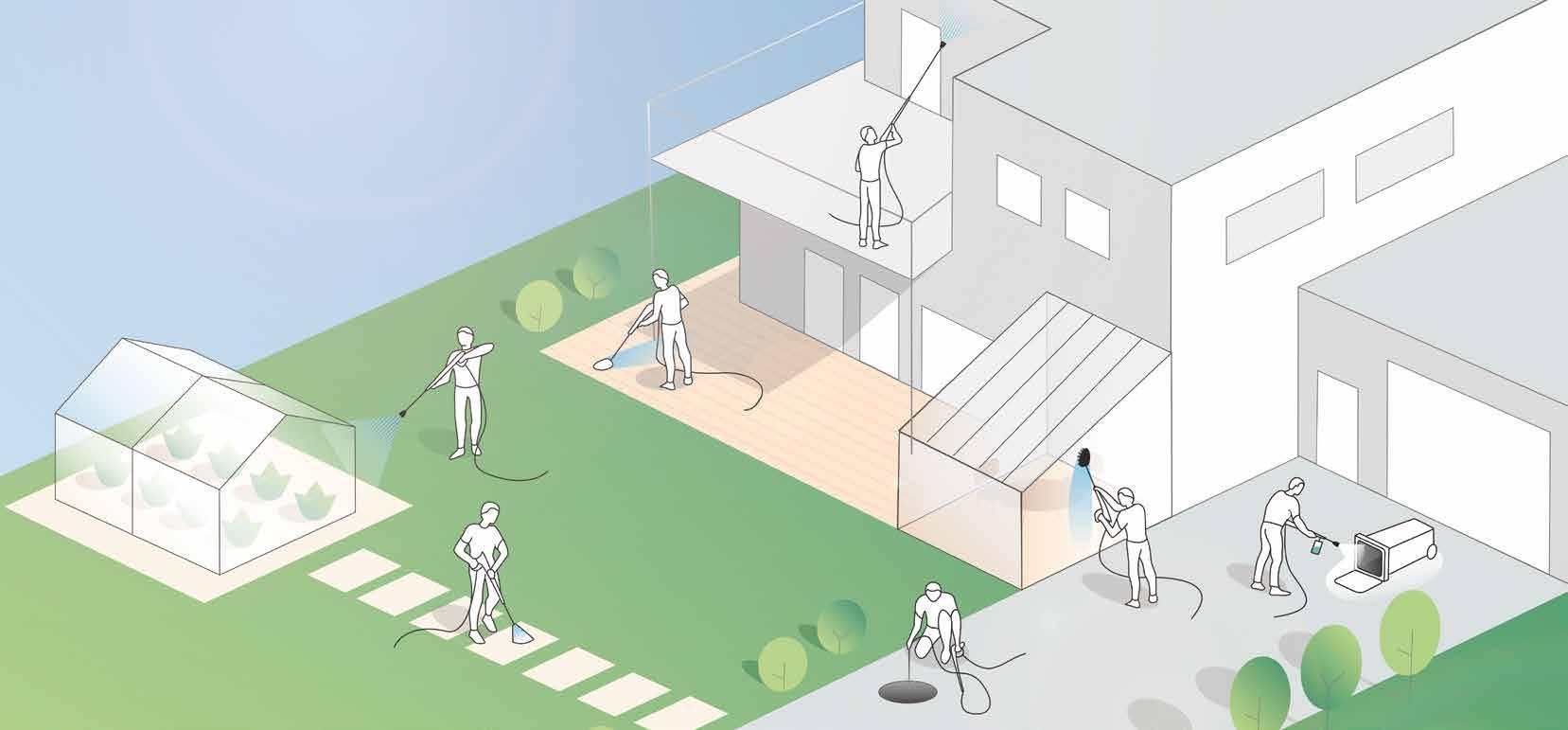 Huis, en tuin altijd tip-top: Een hogedrukreiniger is geschikt voor vele klussen waarbij een grondige schoonmaakbeurt nodig is. Met het veelzijdige Kränzle accessoireprogramma kan de gebruiker het toepassingsgebied nog verder uitbreiden - of het nu gaat om bladeren uit de goot of het mos in de oprit moet worden verwijderd, de fiets moet worden gewassen of de verstopte afvoer problemen veroorzaakt.