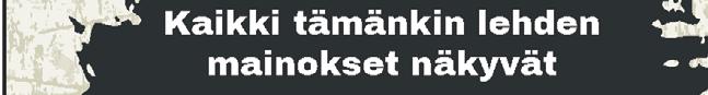SUURIN Jakelualueemme ilmaisjakelulehdistä JAKO! ä SE Keskiviikko lokakuun 4. päivä 2023 www.maaselanextra.fi NRO 10/2023 NUOHOUSPALVELUT • Puh. 0400 914 183 • www.miettunen.com MEIDÄT TAVOITTAA HELPOSTI! Ilmastointi- ja nuohouspalvelu Miettunen TAKUU 10 VUOTTA. PIDETÄÄN KOTI KUNNOSSA Hormit ja hormien korjaukset ILMASTOINTIPALVELUT ILMALÄMPÖPUMPPUJEN ASENNUS & HUOLTO NUOHOUSPALVELUT KATTOJEN PESUT JA MAALAUKSET ASUKKAIDEN ASIALLA! Puistokatu 33, 85800 Haapajärvi, p. (08) 761 831 www.olkkonen.fi AVOINNA: ark. 9-17, la 9-14 VAIHTOKAMPANJA! VALITSE UUDEKSI ÄÄNENVAIMENTIMEKSI TESTIMENESTYJÄ OSUMA OPTIMUM! VALITSE UUDEKSI ÄÄNENVAIMENTIMEKSI OSUMA OPTIMUM! VAIHTOHYVITYS VANHASTA VAIMENTIMESTA 50€ 50€ Kampanja voimassa 1.-31.10.2023 Rauta Reinikainen Oy, Vitikantie 4, Haapajärvi p. (08) 764 808 AVOINNA: