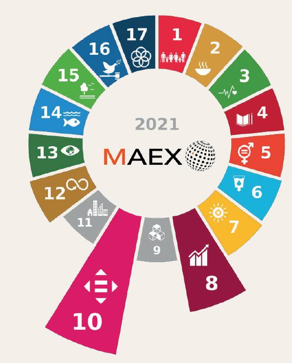 samenwerkingspartners meer dan verdubbeld. In 2021 deden we dit met maar liefst 18 sociale partners waarbij onze rol met name in het opschalen van deze mooie IMPACT@ SOCIAL initiatieven zit. Dit wordt ieder jaar onafhankelijk gemeten door de Maatschappelijke AEX (MAEX) middels een Social Handprint, op al de 17 Sustainable Development Goals.