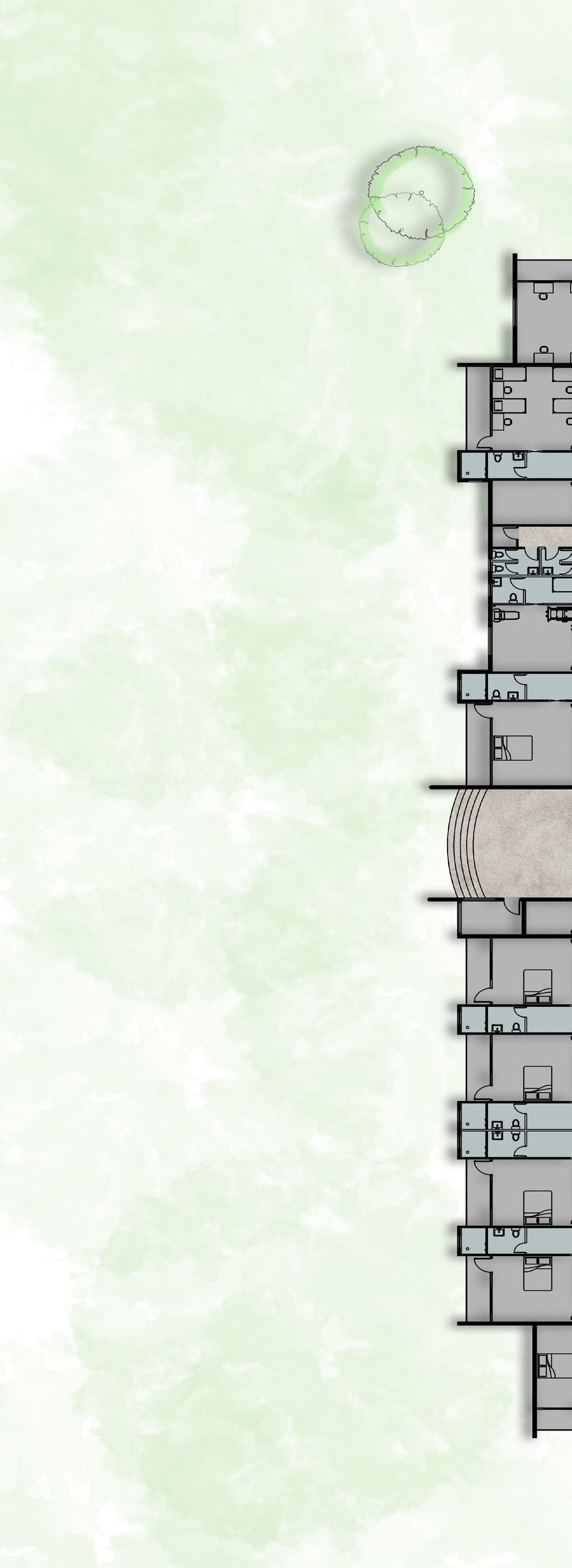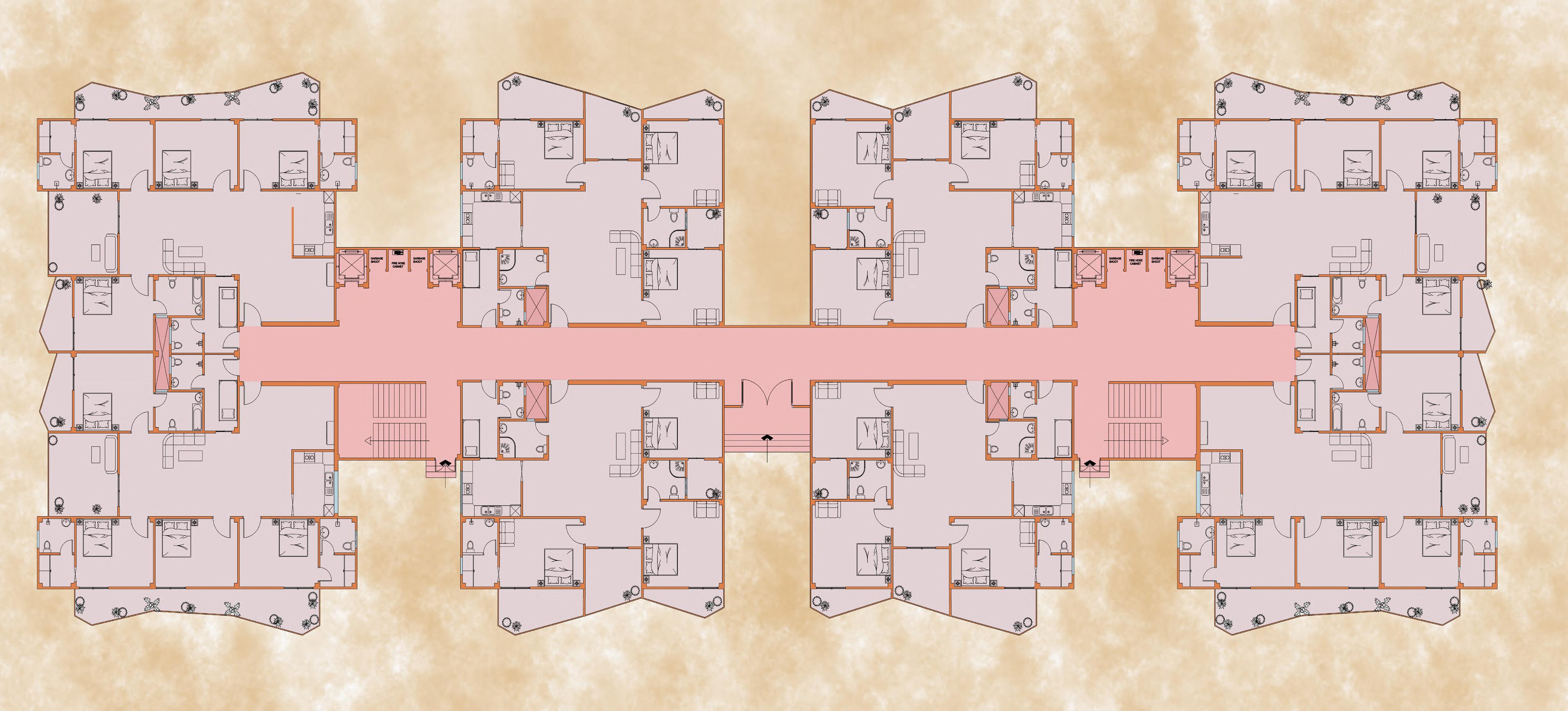 • A CENTRAL CORRIDOR RUNS THROUGH THE BUILDING, ACTING AS A HUB WHERE RESIDENTS FROM EACH FLOOR CAN COME TOGETHER, INTERACT, AND FOSTER A SENSE OF CAMARADERIE. THIS COMMUNAL SPACE PROVIDES OPPORTUNITIES FOR IMPROMPTU GATHERINGS, NEIGHBORLY CONVERSATIONS, AND A CHANCE TO BUILD LASTING RELATIONSHIPS WITHIN THE COMMUNITY.