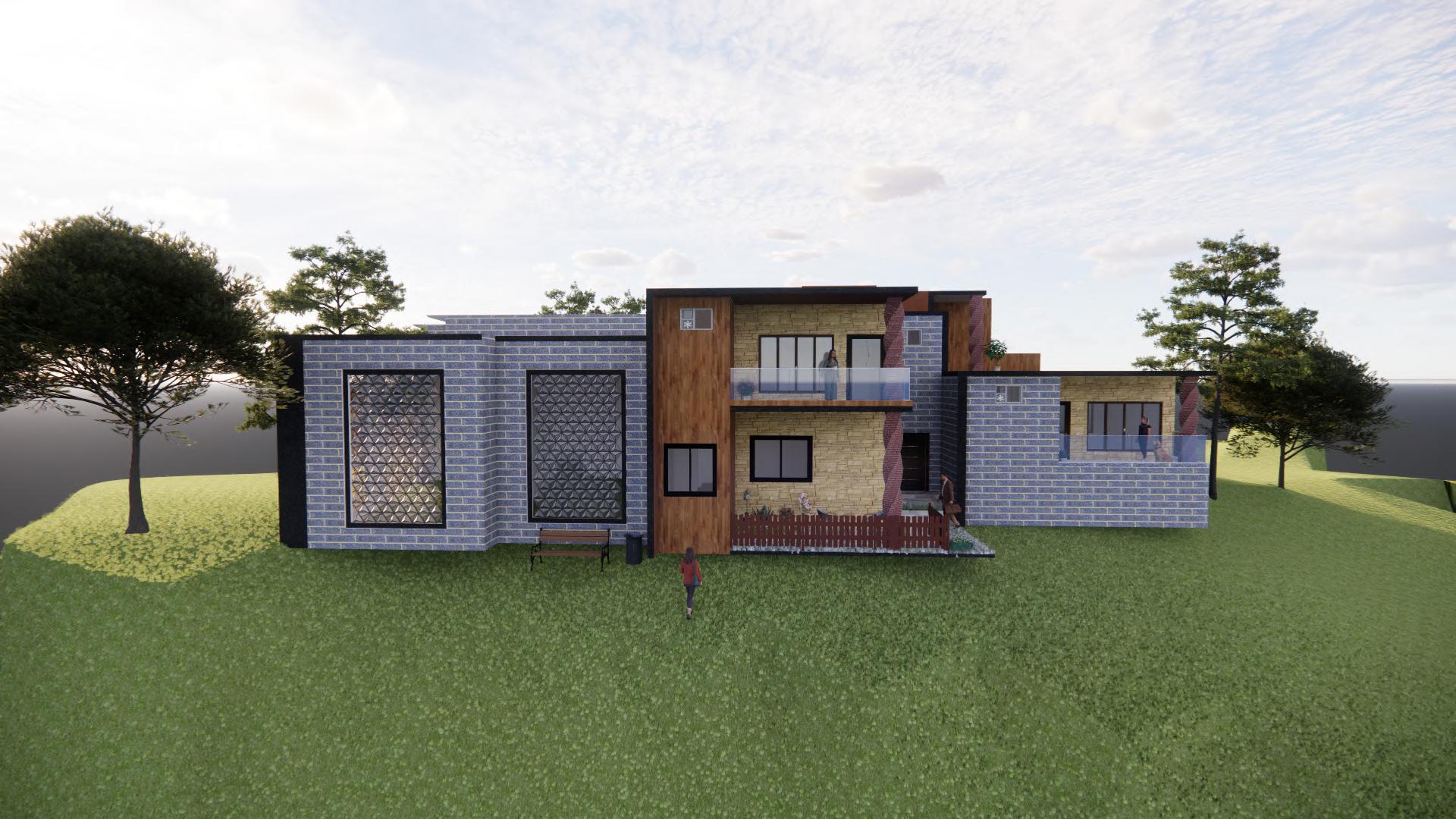 • THE DESIGN OF THE VILLA WITH AN OFFICE, NESTLED ON THE HIMALAYAN FOOTHILLS OF THE GARHWAL REGION, IS A HARMONIOUS BLEND OF CONTEMPORARY ARCHITECTURE AND MINDFUL INTEGRATION WITH THE SURROUNDING NATURAL ENVIRONMENT. THE DESIGN TAKES INTO ACCOUNT THE UNIQUE CLIMATIC CONDITIONS OF THE AREA, ENSURING THE VILLA IS WELL-SUITED FOR YEAR-ROUND COMFORT AND SUSTAINABILITY.