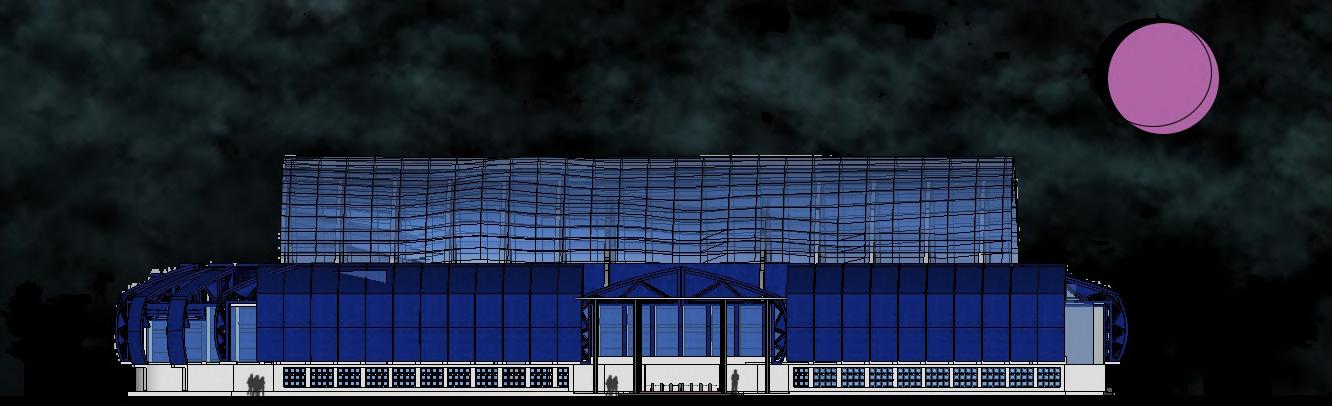 • THE SPORTS COMPLEX PRESENTS AN OUTSTANDING DESIGN FOR AN OLYMPIC-STANDARD SWIMMING POOL COMPLEX, METICULOUSLY CRAFTED TO CATER TO THE NEEDS OF ATHLETES, SPECTATORS, AND VISITORS. THE COMPLEX FEATURES A DIVING POOL, COMPETITION POOL, AND THERAPY AND CONDITIONING POOL, ENSURING A COMPREHENSIVE AQUATIC EXPERIENCE FOR USERS.