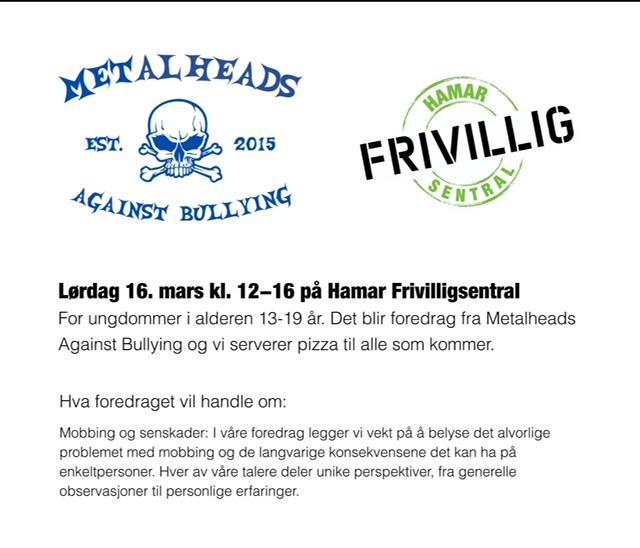 Metalheads Against Bullying er dedikert til Ä Þke bevisstheten og motvirke mobbing pÄ en helhetlig mÄte. Vi ser pÄ mangfold som en styrke og mener at alle, uansett hudfarge, religion, legning eller bakgrunn, fortjener et miljÞ fritt for mobbing og trakassering.
