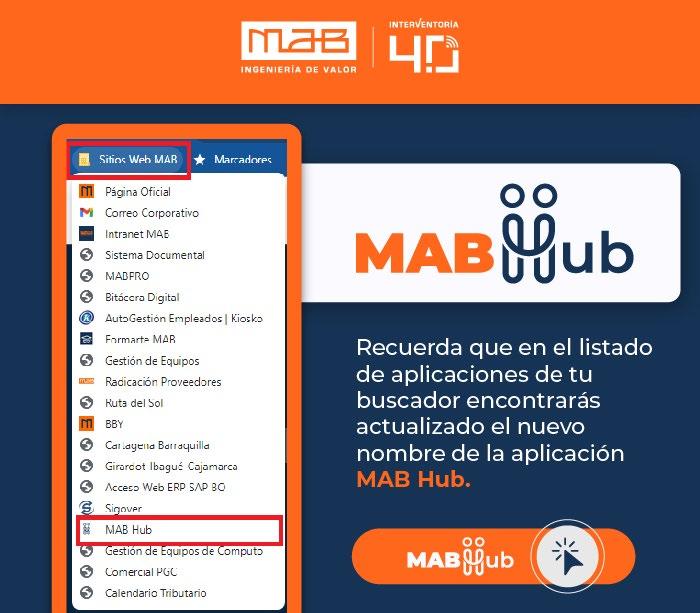 Pasamos de tener una persona encargada de gestionar las iniciativas de innovación en la compañía a crear un área de innovación con 6 personas no solo con el objetivo de liderar el proceso de transformación digital de MAB y la puesta en marcha de proyectos creados al interior como MABPRO sino con un una meta superior, ser I+D+i y convertirnos en una línea de negocios enfocada en generar tecnología para todo el sector de la construcción y una fábrica de ideas y desarrollo de proyectos que aportan a su transformación con un sistema robusto que le brinda un servicio transversal a toda la compañía y que funciona bajo las exigentes normas de innovación con mirar a certificarlo como el sistema de gestión I+D+i ante el Ministerio de las TIC