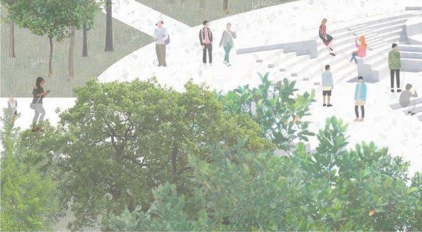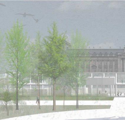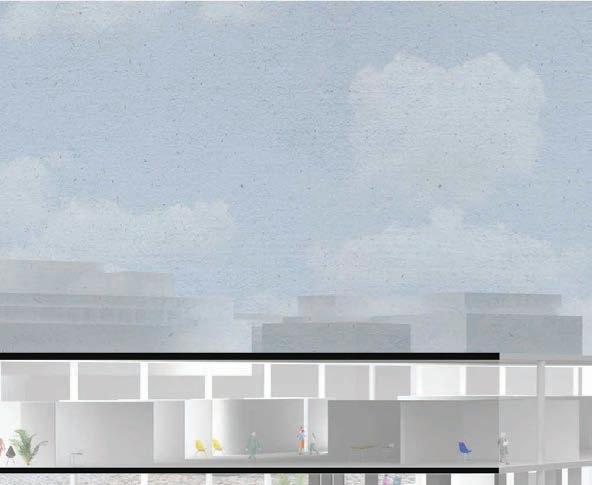 Puis au niveau de la chaussée se présente l’opportunité de reformer un ilot urbain et de reconnecter un parc qui était jusqu’alors enclavé. En ce qui concerne les logements bien qu’il s’agisse de logements groupés, ils sont traités tel des logements individuels mitoyens et de di érentes hauteurs afin de casser cet e et monobloc.