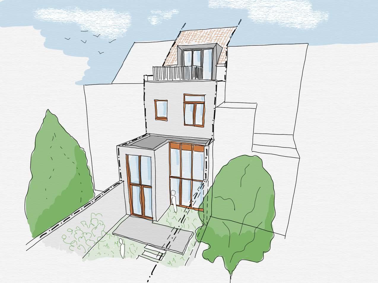 Leur cour d’origine étant étroite et obscure, ils sont à la recherche d’un nouvel espace extérieur, cet espace doit être végétalisé et doit profiter d’un meilleur ensoleillement. Ils souhaitent également profiter de ces travaux pour reconnecter leur cuisine au reste de la maison et pour s’ouvrir à l’extérieur.