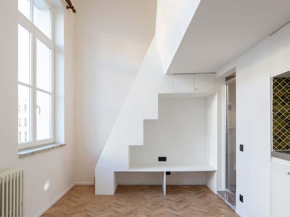 Le réel défi derrière ce projet a été de chercher les mètres carrés dans les moindres recoins et d'organiser les espaces servants pour libérer l’espace servi, à l’intérieur des studios. Ainsi 29 mètres carrés ont été trouvé par studio grâce aux aménagements, au lieu des 18 mètres carrés initiaux.