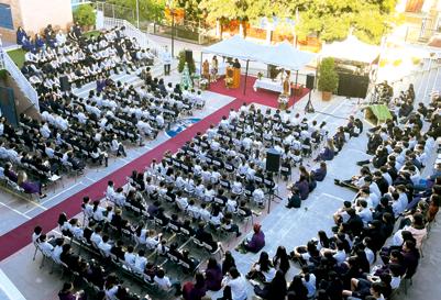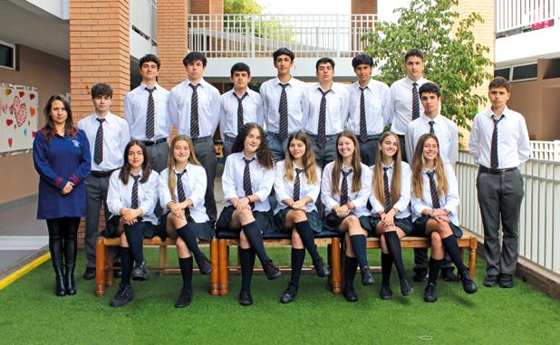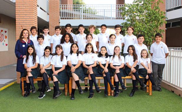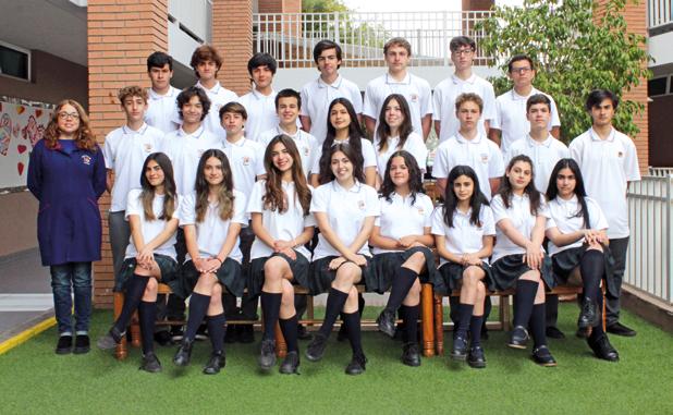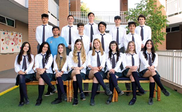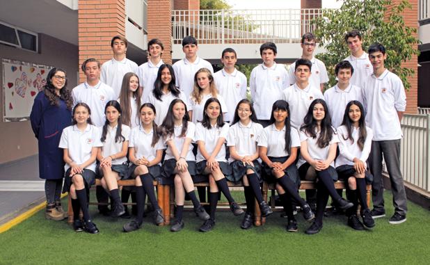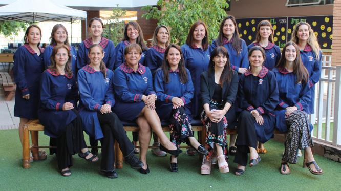 2ª fila (de pie): Bernardita Zamora P. (Sub Directora de Formación y Convivencia Escolar), Fernanda Martinic L. (Coordinadora Académica Junior Level), Paola Mena G. (Sub Directora Académica), Carlos Carrasco A. (Coordinador de Convivencia Escolar), Jacqueline Vega G. (Jefa de Administración y Finanzas), María Ignacia Poblete B. (Coordinadora de Formación y Psicología), Macarena Parada L. (Coordinadora Académica Middle Level).