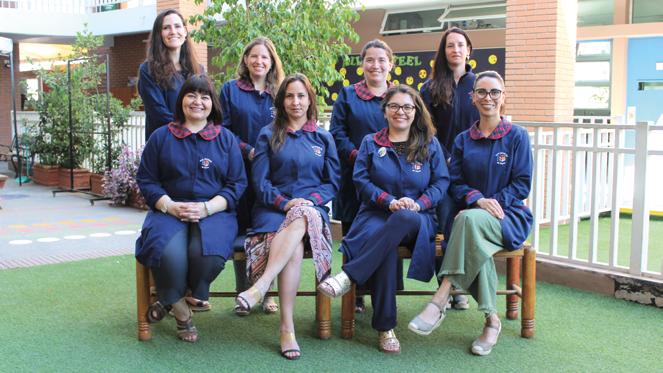 1ª Fila (sentadas): Consuelo Bazán C., Nicole Groisman S., María Trinidad Urra D., Delia Garrido D., Cristina Díaz C. 2ª Fila (de pie): Florencia Ramos L., María Ignacia Urizar S. (Head of Curriculum), Francisca Carrasco S., Marcela Cabello B. y Laura Díaz D.