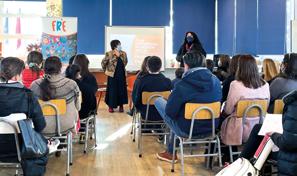 1ª Fila (sentadas): María Francisca Cid P. (Psicóloga Senior Level), Consuelo Tonkin M. (Psicóloga Middle Level), María Ignacia Poblete B. (Coordinadora de Formación y Psicología) y Bernardita Zamora P. (Sub Directora de Formación y Convivencia Escolar).