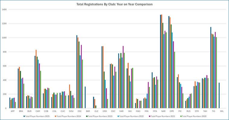 Figure 2: Total Registration by Club: Year on Year Comparison