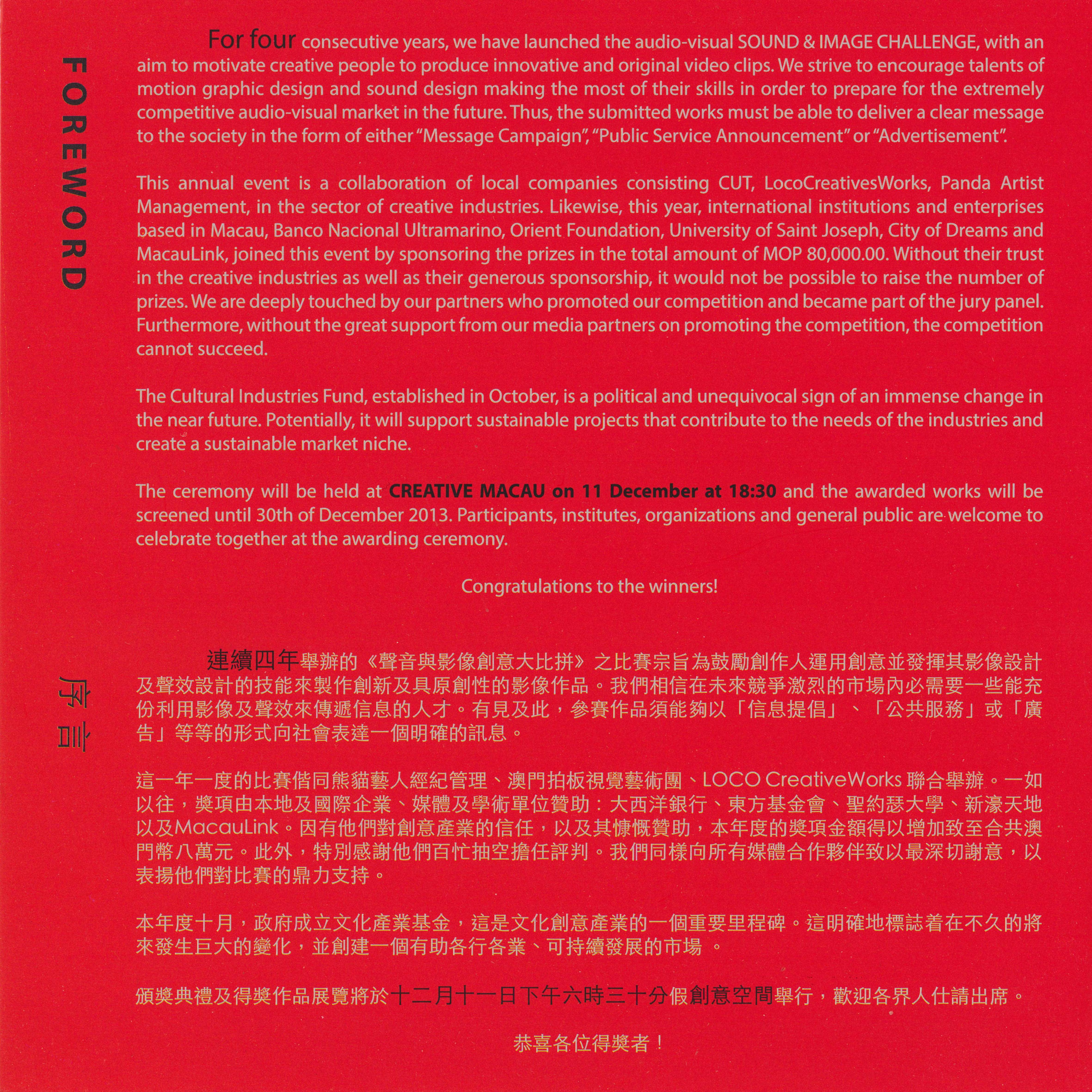 SOUND & IMAGE CHALLENGE WORLDWIDE 2013 by Macau International Short Film Festival - Issuu