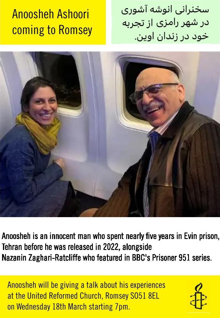 Romsey Amnesty Group will be hosting a thought-provoking exhibition, “Surviving Evin,” at Abbey United Reformed Church in Romsey. The exhibition will be launched at 7pm on Wednesday. 18 March by Anoosheh Ashoori, who was unjustly imprisoned in Evin Prison, Iran. You may know Anoosheh as the British-Iranian businessman who was released at the same time as Nazanin Zaghari-Ratcliffe.