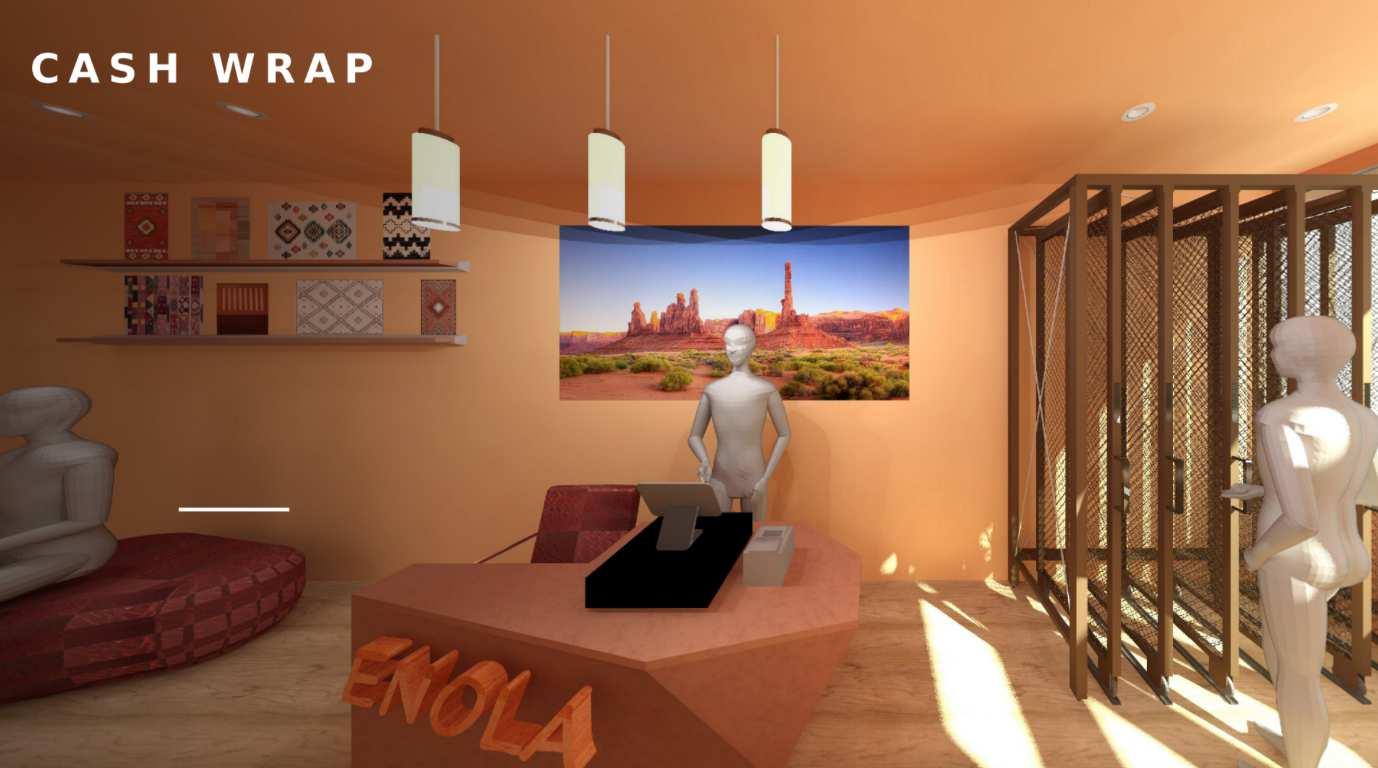 At its core, this project seeks to showcase the rich Navajo culture, specifically their designs and prints that encapsulate their heritage. A paramount objective for this endeavor was to enable the family to swiftly transition to "online mode" when the need arises to close the store to the public. The first floor's adaptability to these situations is a fundamental aspect of the design, facilitated through the careful organization of public and private zones in the commercialspace.
