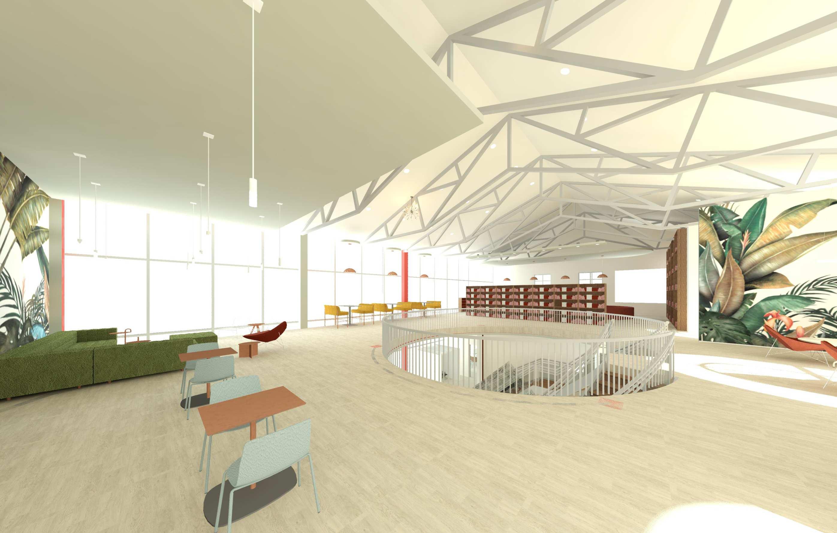 The inclusion of this dedicated reading room is a crucial component of the overall design. Despite the presence of various designated zones for study and collaborative work, it was imperative to provide an exclusive haven solely devoted to the act of reading. The deliberate absence of desks and additional workspace is a strategic decision, serving the essential purpose of preserving the tranquilityofthisquietspace.