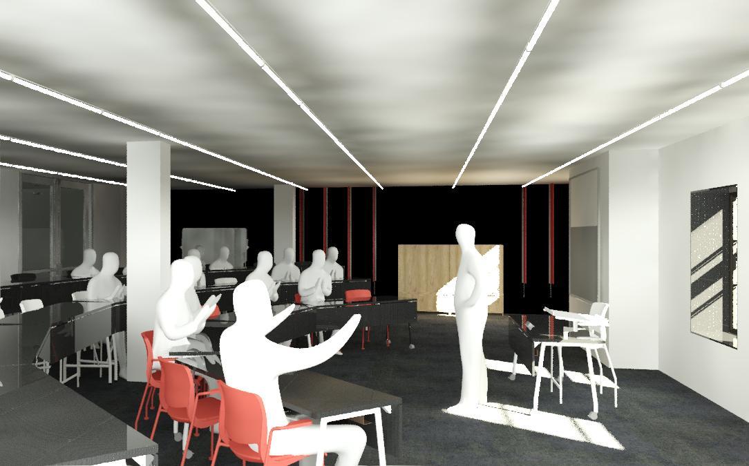 By bringing design and architecture students together in a shared educational setting, we anticipate the emergence of a boundless array of creative ideas. This involved an extensive transformation of an existing building, meticulously reimagined and redesigned to specificallymeettheneedsofthestudentswho will be studying and creating within its walls. The result is a thoughtfully curated space, equippedwithpurposefulroomsandanarrayof resources, all conveniently consolidated in one location.