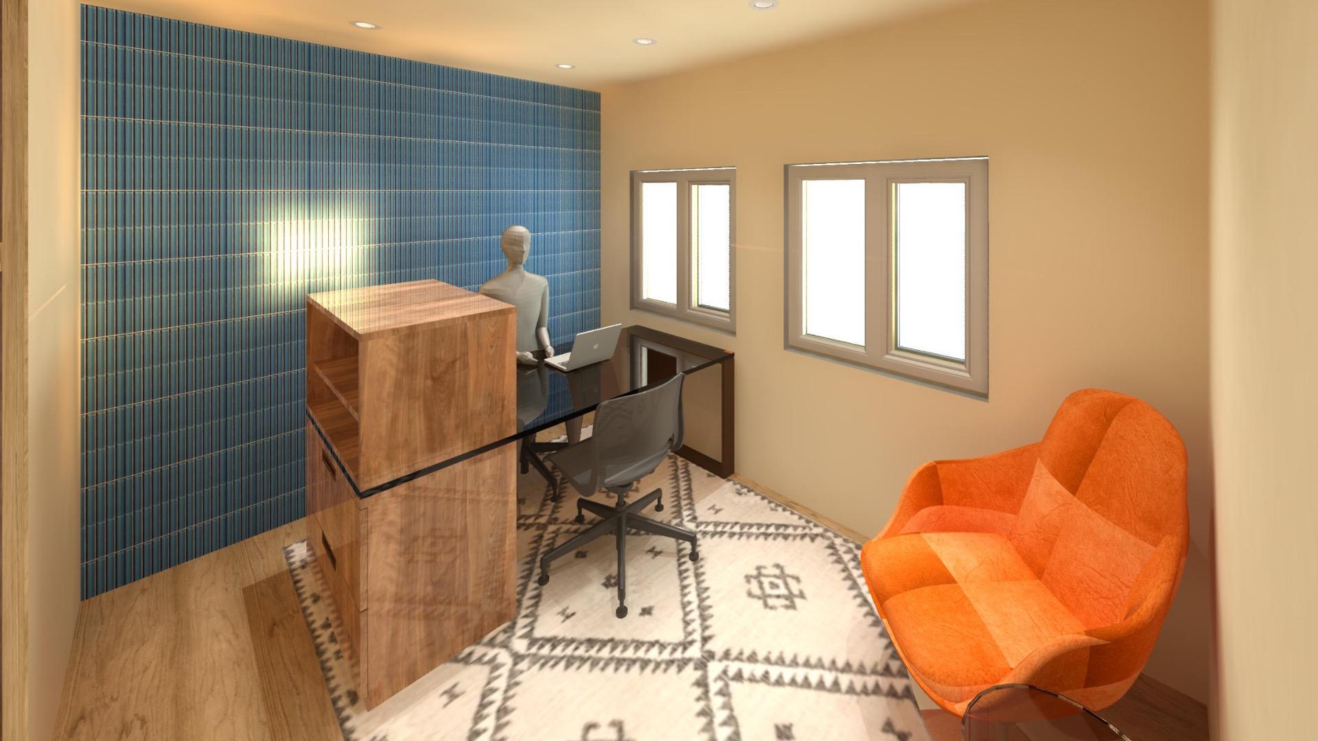 The office represents a pivotal component of this design, as it serves as a seamless transition point for the family when shifting to "online mode." The design approach for this space was elegantly straightforward: it encompasses a rug created by the Navajo family, serving as the anchor for the room, while incorporating contrasting colors to infusevibrancyand serenityinto the environment.