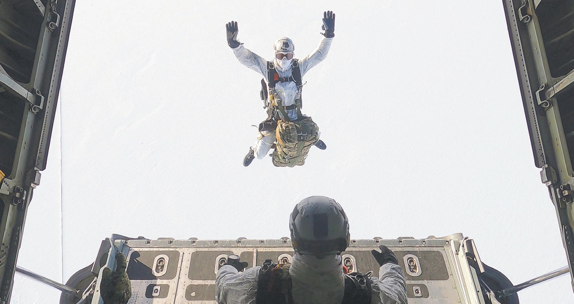 Navy SEALs conduct a high-altitude, low opening airborne operation in support of exercise Arctic Edge 2022 in Deadhorse, Ala., March 4.