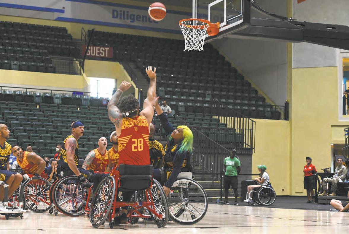 TeamNavyand TeamMarineCorpscompeteinthewheelchairbasketballbronzemedalmatch duringthe2022 WarriorGames,Aug.25.The WarriorGamesarecomposedofover200wounded,illandinjuredservicemembersandveteranathletes,competingin12adaptivesporting eventsAug.19-28,attheESPNWide WorldofSportsComplex2022DoD WarriorGamesWheelchairBasketballGoldMedalGameinOrlando,Florida.