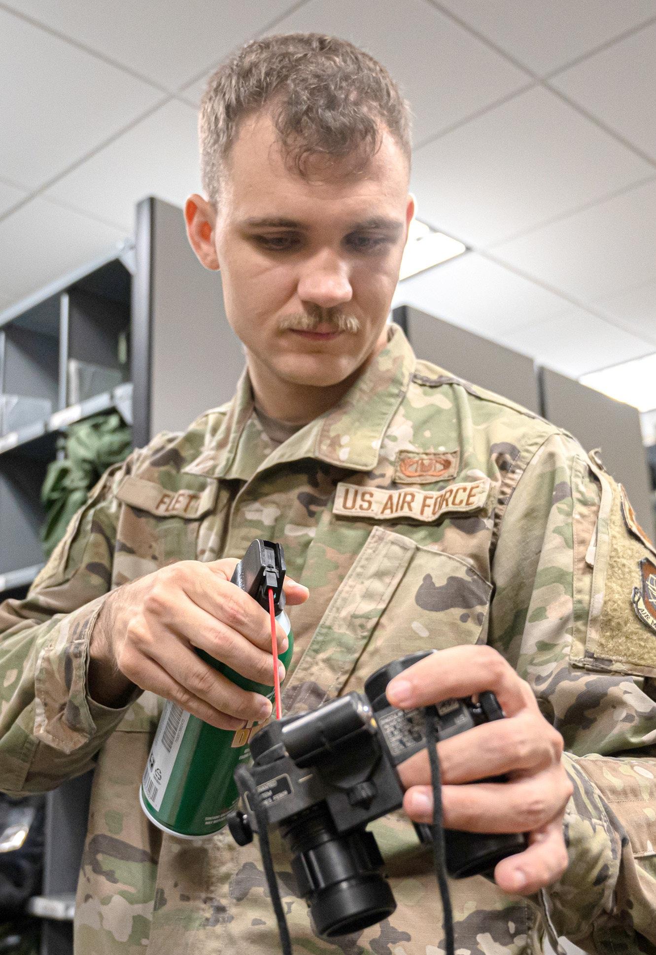 “White phosphor NVGs allow for a higher figure of merit, which means less static or noise in the image,” stated Senior Airman Jesse Flett, 305th Operations Support Squadron aircrew flight equipment technician. “The image becomes clearer and allows for better depth perception and interpretation of lighting.”