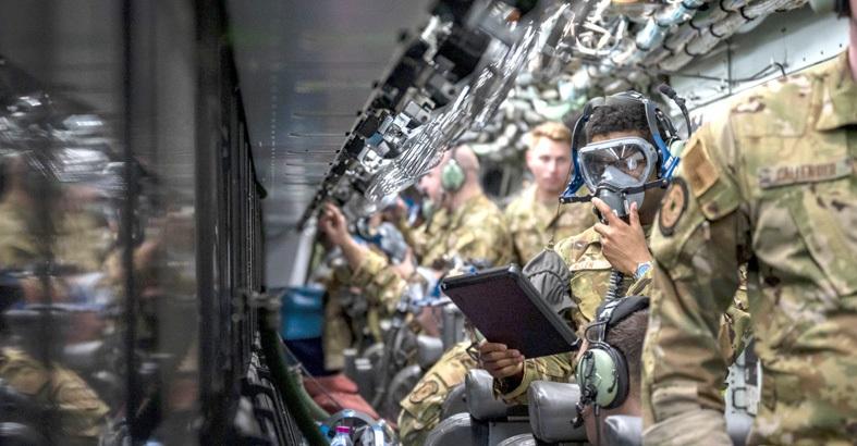 U.S. Air Force Senior Airman Gregory Allen, 763rd Expeditionary Reconnaissance Squadron airborne cryptologic language analyst, checks his flight mask on an RC-135 Rivet Joint during Operation Agile Spartan at Naval Support Activity Souda Bay, Greece, Aug. 20. This exercise not only highlighted AUAB’s commitment of maintaining readiness and deterrence toward adversaries in the U.S. Central Command’s area of responsibility, but also the 379th Air Expeditionary Wing’s ability to rapidly generate combat airpower and engage in agile combat employment scenarios. The month-long, multinational operation demonstrated interoperability between regional partners, improved response capabilities, and further enhanced security throughout the region.