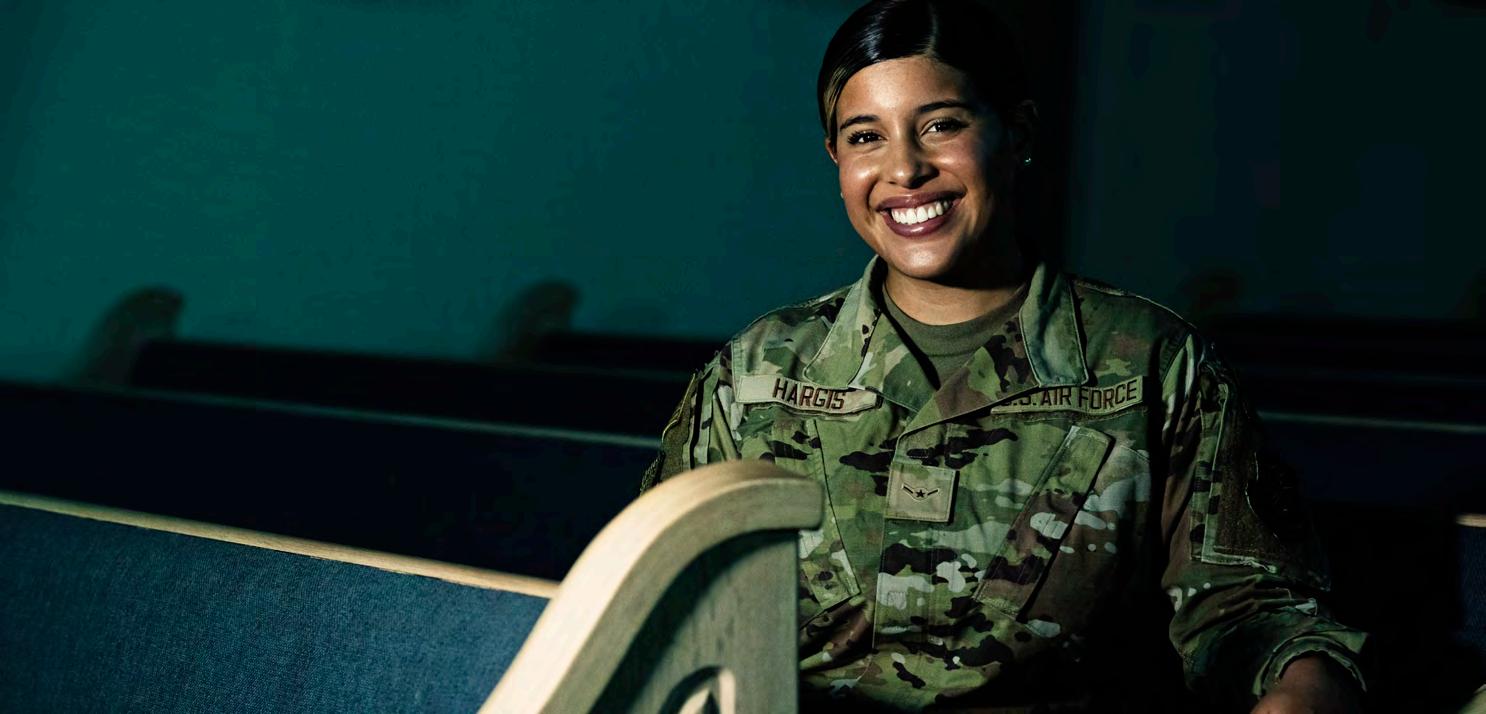Gainingasenseofadventurefromherfather’smilitaryservice, andasenseofdevotionfromhermother, Hargisfoundapaththat wouldpaytributetobothofher parent’s contributionstotheAir Force, asa chaplain’sassistant.