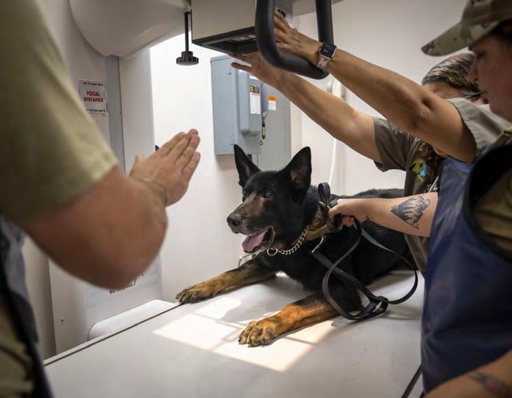 Preservingthehealthandwell-beingofeach MWDisadedicatedteam ofveterinaryprofessionalsworkingwithhighlytrainedhandlerstosupportandtrainMWDoperationsonaregularbasis.