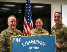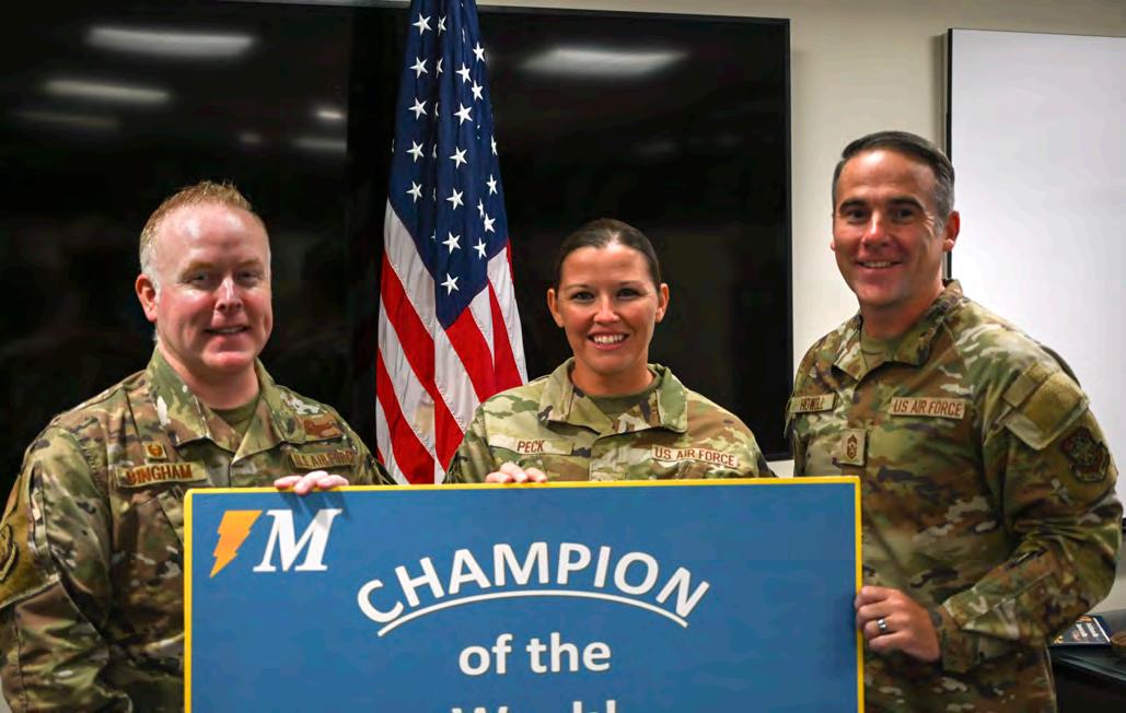 U.S.AirForce Tech.Sgt.SamanthaPeck,6th CommunicationsSquadronprojectmanager,is recognizedasChampofthe Weekbythe6thAirRefuelingWingleadershipteamatMacDillAirForceBase Sept.26.PeckfilledinasthesuperintendentforherflightandtookchargetoleadherAirmenduring aNuclearOperationalReadinessInspection.