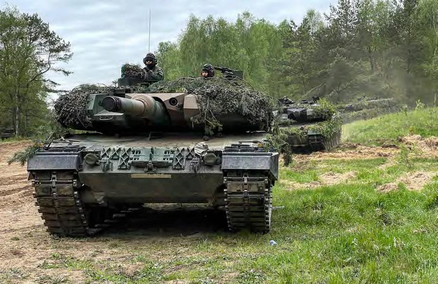 (Left)PolisharmyLeopard2Atanksprepare forthemultinationalDefenderEuropeexerciseatDrawskoPomorskie,Poland,May 14.Defender Europe22 isaseriesofU.S. ArmyEuropeandAfricamultinationaltrainingexercisesin Eastern Europe.TheexercisedemonstratestheabilityofU.S.Army EuropeandAfricatoconductlarge-scale groundcombatoperations