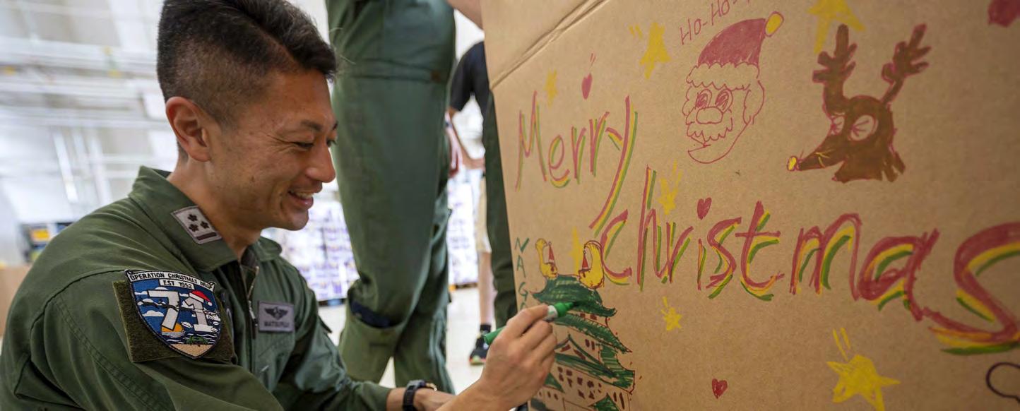SeniorMasterSgt.SierraRoberts,flightchief,individual reservistoperationshandsprefilledstockingstoAirmenduringthe Operation ToyDropatMacDillAirForceBaseDec.9.Robertsworked alongsidevolunteersfromthe Tampa Baycommunity tocollectanddonateoverfivethousandtoys,books,stuffedanimalsandbicyclestothe MacDillcommunity.
