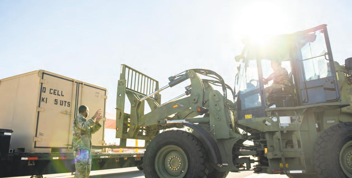 U.S.AirForce Tech.Sgt.IsmaelHayes,thenoncommissionedofficerinchargeofAir Transportationforthe24thSpecial OperationsWing(SOW),Detachment1,andAirman1stClassZoeStough,agroundtransportationsupportoperatorwith the6thLogisticsReadinessSquadron,loadcargoontoasemi-truckatMacDillAirForceBaseFeb.1.The24SOW,Det. 1conductedtheirfirstjointdeploymentexercisesincetransitioningfromUnitedStatesSpecialOperationsCommandto AirForceSpecialOperationsCommand.