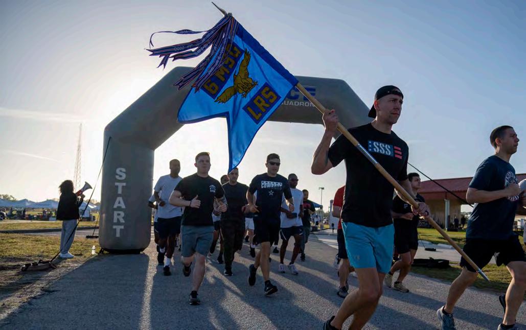 Airmenassignedtothe6th AirRefuelingWingparticipateinaformationrunduringWingman DayatMacDillAirForceBaseFeb.10.Theeventbroughtunitsfromacrosstheinstallationtogethertocompeteinvariouseventsincludingaformationrun,golf,basketball,volleyball,softball,tugo’war, football,cornhole, kickballand dodgeball.